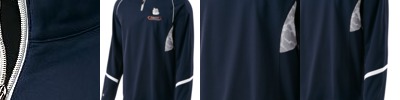 100% polyester brushed back fleece, 7.4 oz./yd2/250 gsm; Moisture wicking performance á; chin guard; front reverse coil zipper with reflective asymmetric piping; chest pocket with reverse coil zipper and zipper garage; contrast coverstitch detailing; lower pockets with reverse coil zippers;