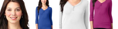 LM1007 Ladies Concept Stretch 3/4 Sleeve Scoop Henley