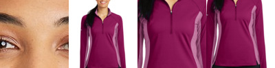 By mixing heather with a solid color and adding reflective hits, this moisture-wicking pullover has a technical look plus plenty of stretch for easy movement. 6.8-ounce, 90/10 poly/spandex jersey Soft-brushed backing Tag-free label Reflective details on right sleeve and lower back Feminine curved and blocked design details on back Cadet collar Reverse coil zipper Princess seams Raglan sleeves Open cuffs and hem Thumbholes to keep hands warm Drop tail hem