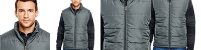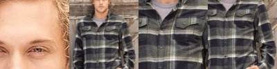 100% poly lining; 4.1 oz. 55/45 cotton/poly flannel shell; Quilted nylon lining; Button-down front; 2 chest pockets with hook and loop flaps; Side pockets;