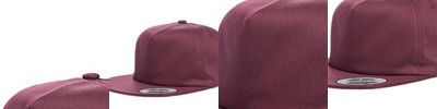60% cotton, 40% polyester; 5-panel, unstructured, high-profile; Four-row stitching on bill; 3¾" crown; Four sewn eyelets; Matching plastic adjustable closure; Matching undervisor; Flat bill;