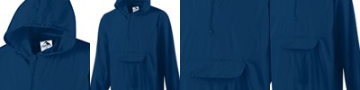 1.5 oz/yd2 / 58 gsm, 100% polyester taffeta with water-resistant finish; Encased elastic at hood opening for superior weather protection; Reflective tape details at front and back shoulders and placket; Two-snap closure at placket with dyed-to-match plastic snaps; Packable into self back pocket with hook and loop closure; Shockcord at lower hem for added weather protection;