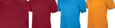 100% polyester wicking knit; Wicks moisture away from the body ; Updated fit has longer length and bigger chest for added comfort; Pad print label ; Self-fabric crewneck collar; Raglan sleeves provide greater range of motion ; color secure technology helps prevent dye migration;