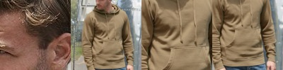 6.49 oz./yd2 / 220 gsm, 100% polyester mélange jersey bonded with fleece; Center front coil zipper with semi autolock slider ; Front hand-warmer pouch pockets; Tonal coverstitch details at shoulders;