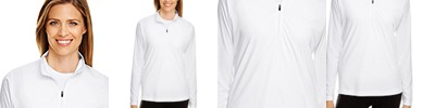 100% polyester wicking knit; Wicks moisture away from body; Color secure technology helps prevent dye migration; Set-in sleeves; Quarter-zip pullover style; Tear away label;