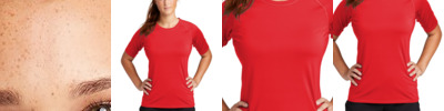 These tees stretch and move with you while you¿re swimming or during any water activity. Designed to combat UV rays and moisture, these breathable and quick-dry tees also have PosiCharge technology to lock-in colors and logos. 5.9-ounce, 90/10 poly/spandex stretch jersey with PosiCharge technology UPF rating of 50 Trim, comfortable fit Tag-free label Raglan sleeves Underarm gussets