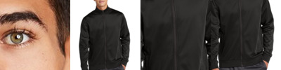 The classic tricot track jacket with pieced stripes and rib knit details. 100% polyester tricot 100% polyester rib knit cuffs and hem Soft-brushed backing Cadet collar Tag-free label Reverse coil zipper Pieced stripe on shoulders and sleeves Front pockets
