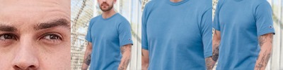 - Double-needle stitched sleeves and bottom hem