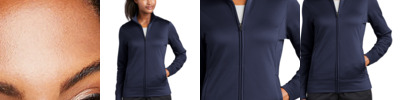 Designed for performance and comfort, this stretchy jacket has a soft-brushed backing and features Sport-Wick moisture-wicking technology. A unique cowl collar and sleeve ruching give this piece a feminine touch—making it perfect for the gym or around town.
