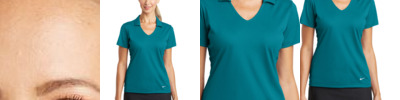 This polo delivers timeless style and performance with ultra-smooth double pique and Dri-FIT moisture management technology. Design features include a streamlined self-fabric collar and open hem sleeves. Tailored for a feminine fit with a five-button placket. A heat transfer contrast metallic silver Swoosh design trademark is on the left sleeve. Made of 6-ounce, 100% polyester Dri-FIT fabric.