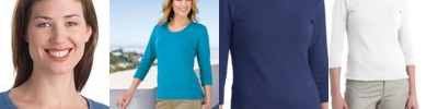 Women of all shapes will appreciate our Modern Stretch Cotton Collection. With an updated fit and figure-flattering details, the extra soft cotton is combined with a dash of spandex to retain shape—and make the most of yours. We've added extra length throughout the body for clothes that move with you for exceptional comfort all day long. A modest scoop neck and 3/4 sleeves give this comfy top enduring feminine appeal.