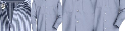 3.4 oz., 55% cotton, 45% polyester; Fine yarn count shirting; True Non-iron performance straight from the dryer; stain release finish; Classic Fit for professional appearance; Patented pucker-free taped seams; Fused collar cuffs and placket; Split back seam with bias cut back yoke; rolled button-down collar; adjustable Comfort Collar for up to an inch of stretch at neck; left-chest pocket; pearlized buttons;
