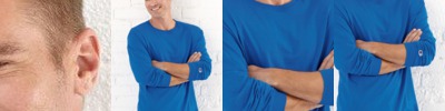 - Flatlock stitch ribbed collar with EasyTearTM label