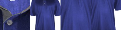Contoured side seams and 4-button placket add dash to this stain-resistant jersey knit shirt.