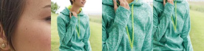 - Contrast color hood lining and drawcord